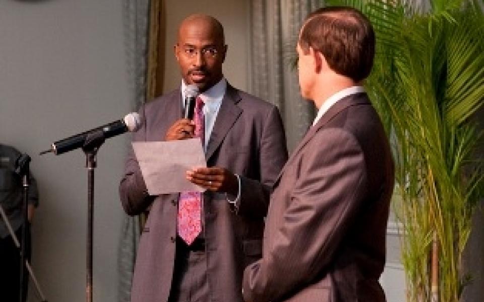 Van Jones delivering a statement to Robert Orr, Under Secretary General of the United Nations, at the Temple of Understanding Awards, October 31, 2010