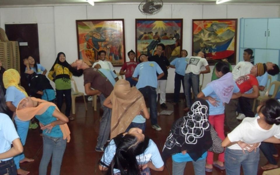 Around thirty to forty Muslim and Christian youths (ages thirteen to twenty-five) from each of the grassroots communities of Culiat and Tala get together in their respective communities each week to sit in a circle and engage in inner work and self-awareness exercises that promote dialogue and heart listening for Muslim-Christian relationship-building. They reach out beyond their comfort zones to get to know each other, create a safe space and common ground where they can honor and respect each other’s differences (while appreciating what they have in common), and bend over backwards in physical, mental and spiritual exercises that enable them to center themselves on the ways of peace.