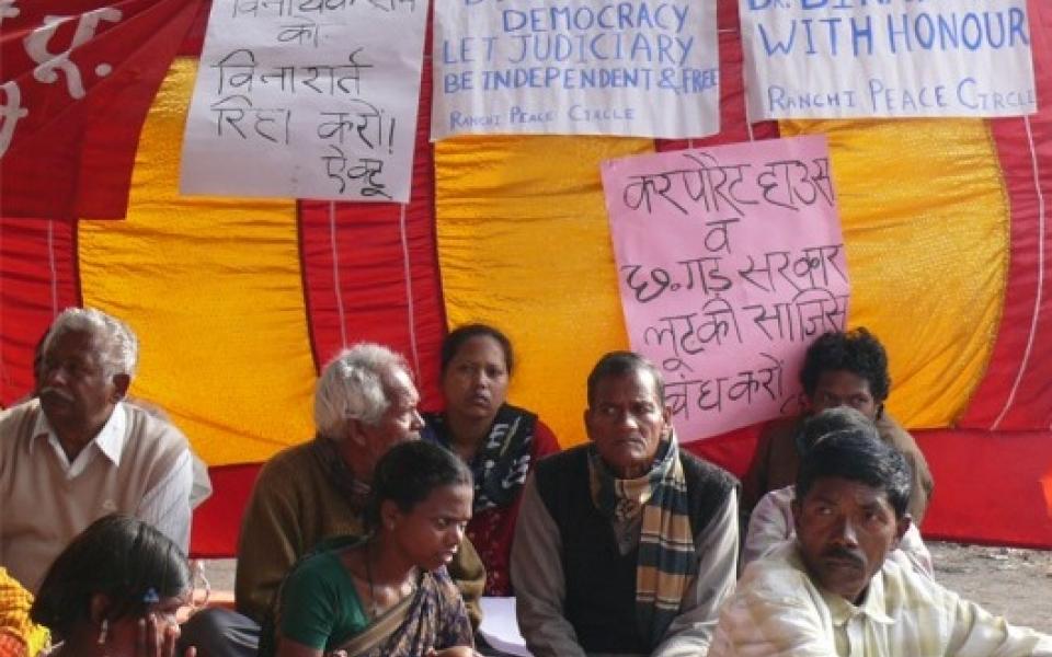 The two other pictures are from an ongoing protest camp by Ranchi Peace Circle, demanding justice against the arrest of Dr. Vinayak Sen, true social activist serving the tribaland untouchable communities to fulfill the medical needs and other social developments. Dr. Sen was accused of helping the Maoists and was arrested and now behind bars. Thousands of children and families are now without a medical doctor, raising their voices along with many other renowned activists in the country including Swami Agnivesh Ji.