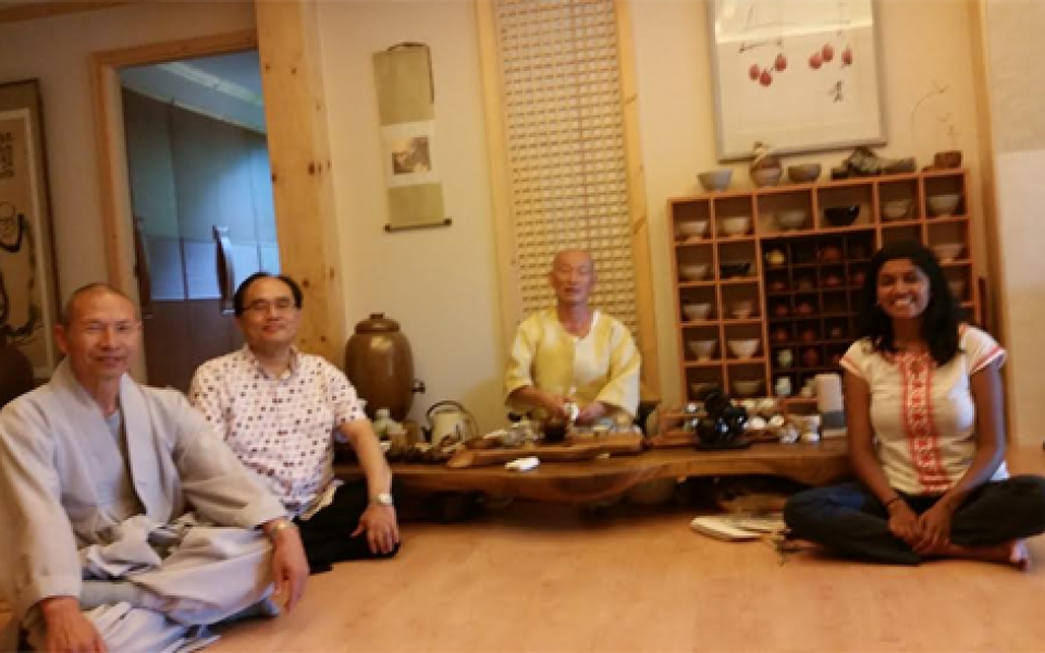 The camp ended Tuesday evening, and Jinwol and I left early morning the next day to visit a few of the Korean CCs, many of which have been around for more than a decade. URI Korea works in a unique way—key people in each URI Korean province are responsible for coordinating and overseeing the interfaith activities that happen in their community. Here's a picture of us visiting the hermitage where their weekly mediation and dialogue sessions take place: