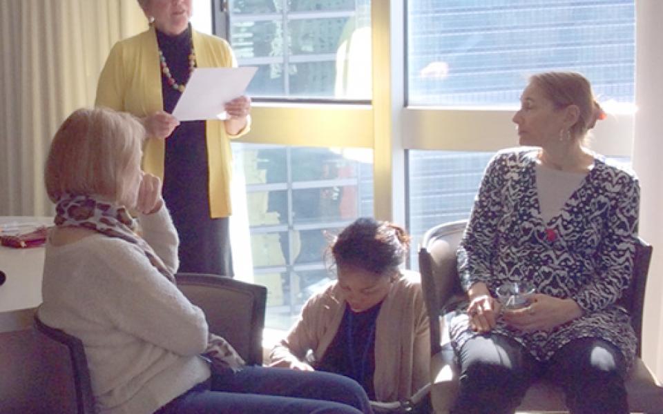 URI UN Representative Monica Willard welcomed everyone with enthusiasm and improvised refreshments. Kiran Bali gave a warm greeting and an update on the URI Global Council. Deborah Moldow offered a brief history of the URI at the United Nations, acknowledging several people in the room who were present at the Charter-signing ceremony at the UN that was simultaneous with the official one held in Pittsburgh on June 26, 2000.