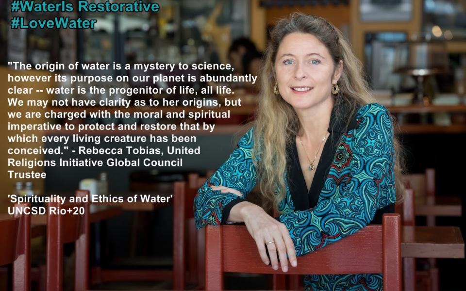 His discussion will be followed by a series of presentations by URI members from several religions, spiritual traditions and indigenous beliefs who will describe the essential meaning of water– a symbolic and practical element of every faith. Joining the panel is Global Council Trustee Rebecca Tobias, “The origin of water is a mystery to science, however its purpose on our planet is abundantly clear--water is the progenitor of life, all life. We may not have clarity as to her origins, but we are charged with the moral and spiritual imperative to protect and restore that by which every living creature has been conceived.”