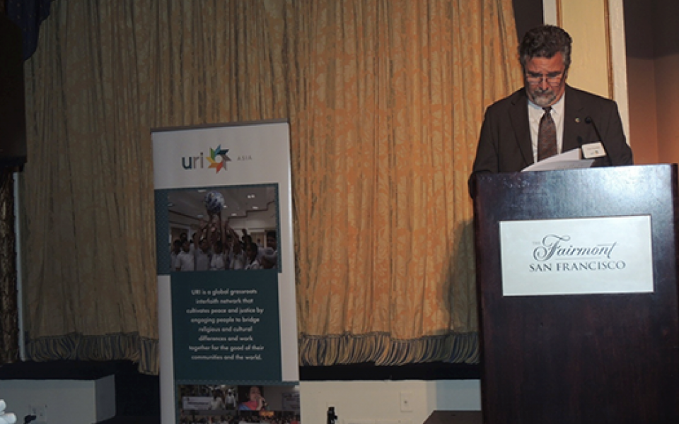 URI Executive Director Rev Dr Victor Kazanjian Jr making a presentation at the Circles of Light URI Annual Gala at the Fairmont Hotel in San Francisco, CA, USA on the 14th of March, 2015
