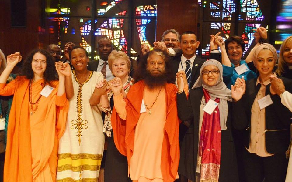 Pujya Swami Chidanand Saraswati also led a pledge of solidarity in which all the leaders stood and held hands as he spoke, “We are united by love for humanity and our commitment to serve humanity. Together we will eradicate poverty. Together we will ensure that our global family has access to water, sanitation, hygiene, health and education. Together we will have faith, and together we will BE faith. Together the world will change.”