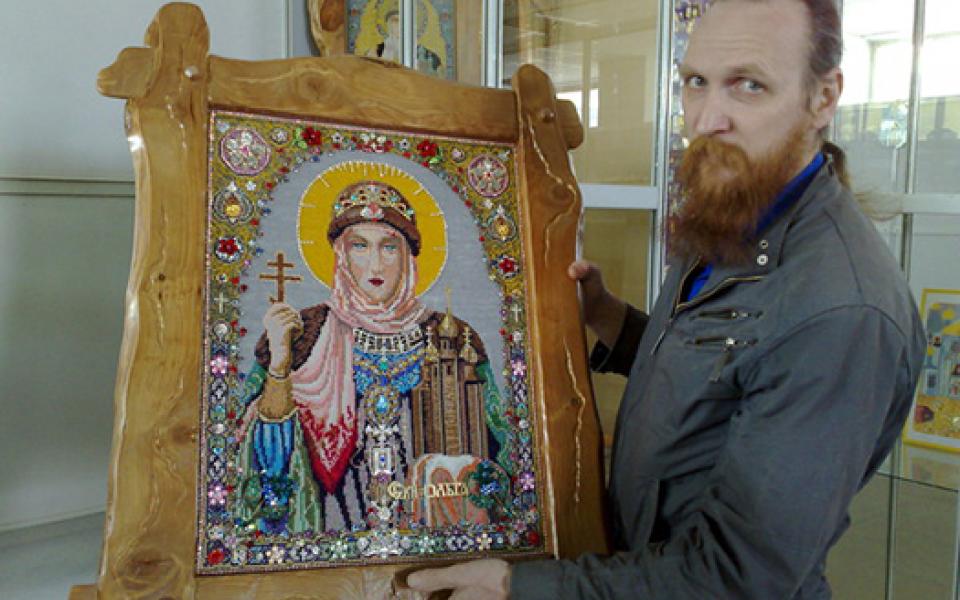 Dmitriy Dobryi has done an embroidery picture of Holy Olga with his own hands.