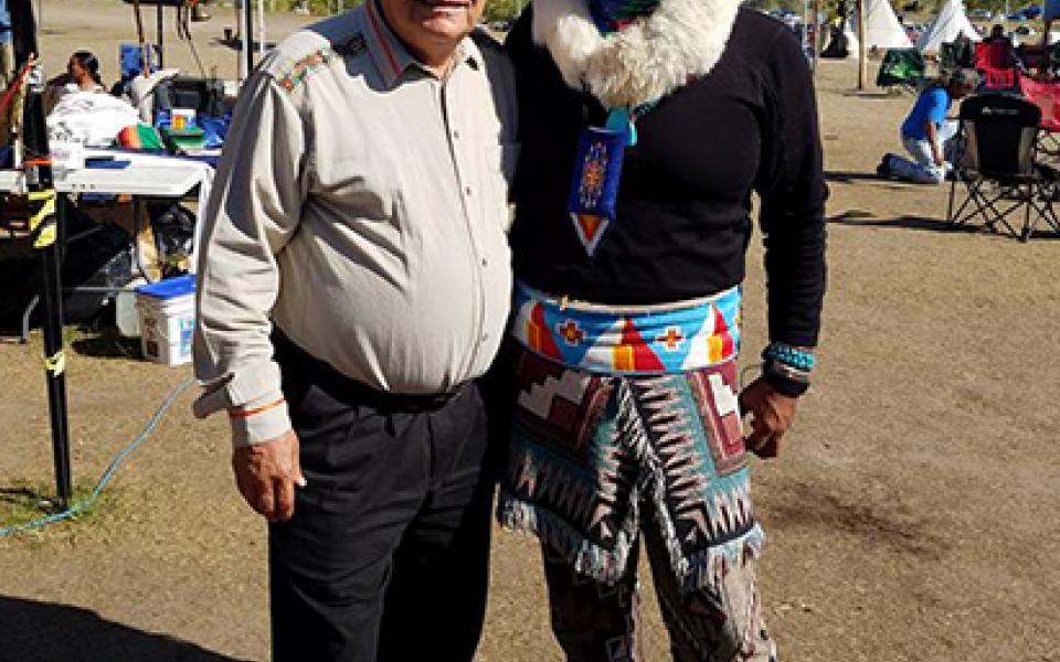 Photo showing the day URI Global Council Trustees Elder Audri Scott Williams and Elder Phil Lane, Jr. read the statement of support and delivered the URI flag during events at the Standing Rock Camp.