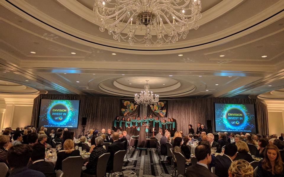 At URI's Circles of Light gala this past Saturday, guests listen to the Oakland Interfaith Gospel Choir sing as part of the invocation blessing to begin the evening. The invocation also featured songs of prayer from special guests Fatih Ates and Rabbi-Cantor Elana Rosen-Brown.