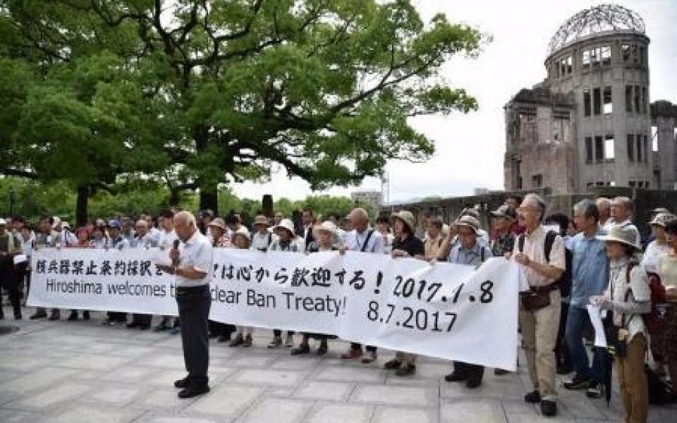 Supporters of the Nuclear Ban Treaty at Hiroshima Peace Memorial Atomic Bomb Dome Photo courtesy of Tomoko Watababe