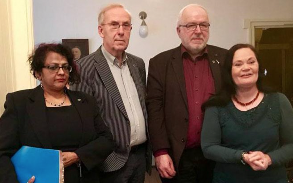 From left to right: The new Chairman Hanna Mitra Rambaran, the former Chairman Ari van Buuren, the former General Secretary Bart ten Broek, the new General Secretary Morgana Sythove.