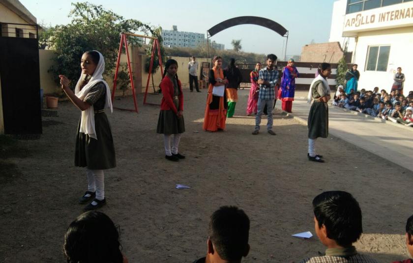 On that day, the students of Apolo International School performed a drama on education very well. The problems faced by students at home regarding education were very well-described in the play, which was performed by the children.