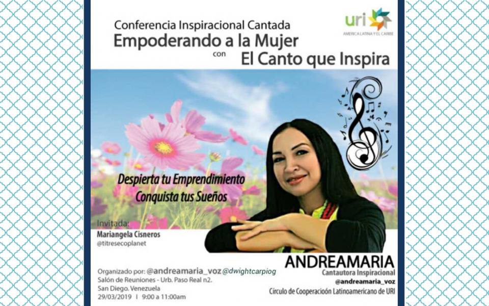 Enterprising women from the community of San Diego’s Town at the State of Carabobo in Venezuela are going to be benefited by a musical tool called THE INSPIRATIONAL SONG, created by ANDREAMARIA - a singer from URI Cooperation Circle of Latin-American Musicians - who was one of the twelve winners of the second edition of A Song for Peace Festival, in San Luis de Paraitinga, Brazil 2017.