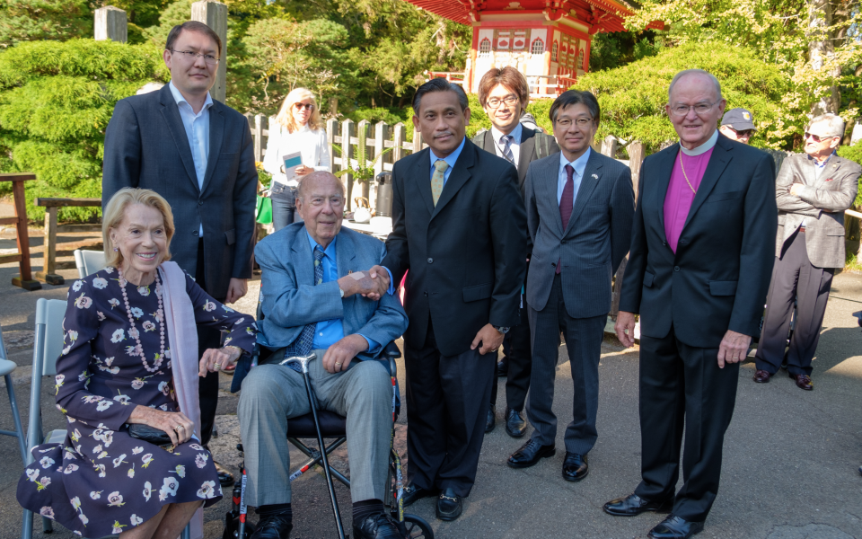 Welcome everyone! And thank you for honoring us with your presence: Mayor Breed, Consuls General, Members of Recreation and Park Services, Friends of the Tea Garden, members of the Japanese community and friends of the United Religions Initiative. In addition, we have with us today the last person who was born in this Tea Garden, Tanako Hagiwara, whose family managed this garden from 1895 until 1942.