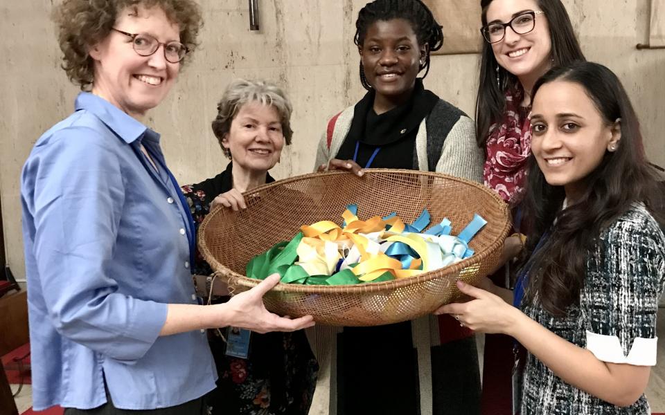 Kendra (second from right) participates in a ceremony at the UN Chapel.