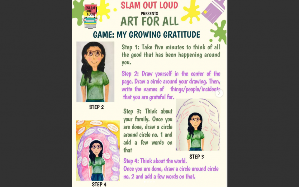 Slam Out Loud, a URI group in Delhi, India, has created an online activity for everyone to participate. It gives people an opportunity to reflect on how this pandemic has shown strengths and made us better in many ways. "The virus has pushed us to find strength inside ourselves, and in line with the same spirit, we shared an insightful activity with our children titled My Growing Gratitude!" the group writes in its Instagram post. "Their responses left us feeling a whole lot of gratitude for the work we do, along with renewed hope to keep going! If you attempt this at home, DM us your responses to get featured on our page!"