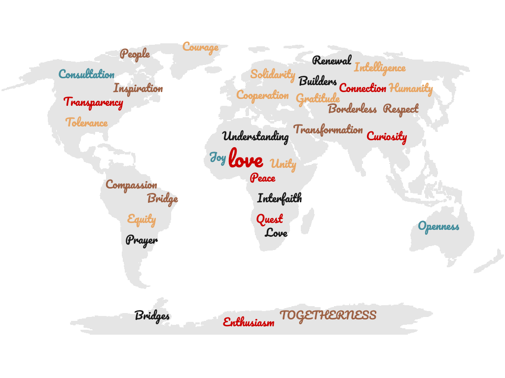 At the end of the call, a beautiful word cloud poem was created to represent the values that are embedded into URI’s birth. One of the groups also shared a spontaneous song from Latin America about gratitude.