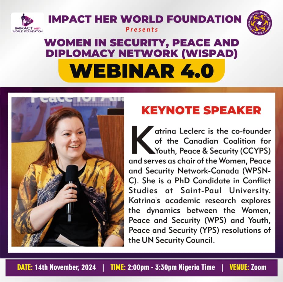 Moderated by - Ms Nkechika Ibe, founder and director, of Impact Her World Foundation and Chair of Women in Security Peace and Diplomacy Network (WISPAD)